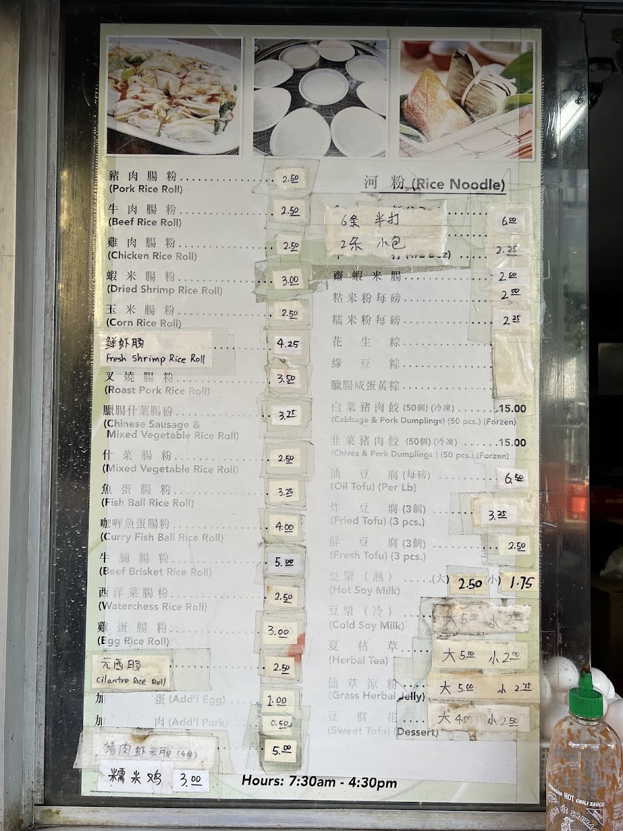 In addition to the dumplings, the restaurant offers a selection of Rice Rolls that cater to a variety of tastes. Options include Pork Rice Roll, Beef Rice Roll, Chicken Rice Roll, Dried Shrimp Rice Roll, and Plain Rice Roll. These rolls are perfect for those looking for something savory yet light, and each one offers its own unique combination of flavors.